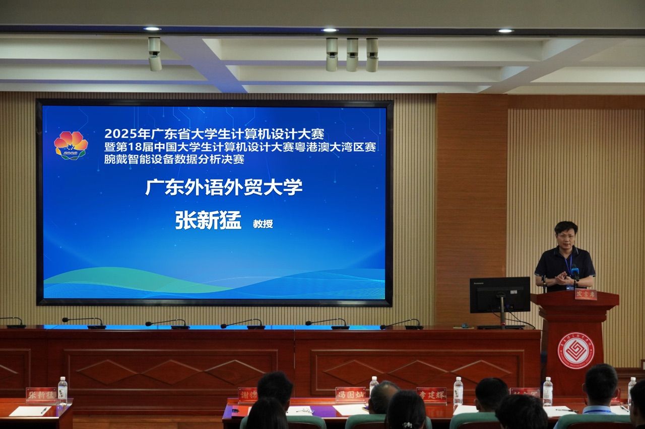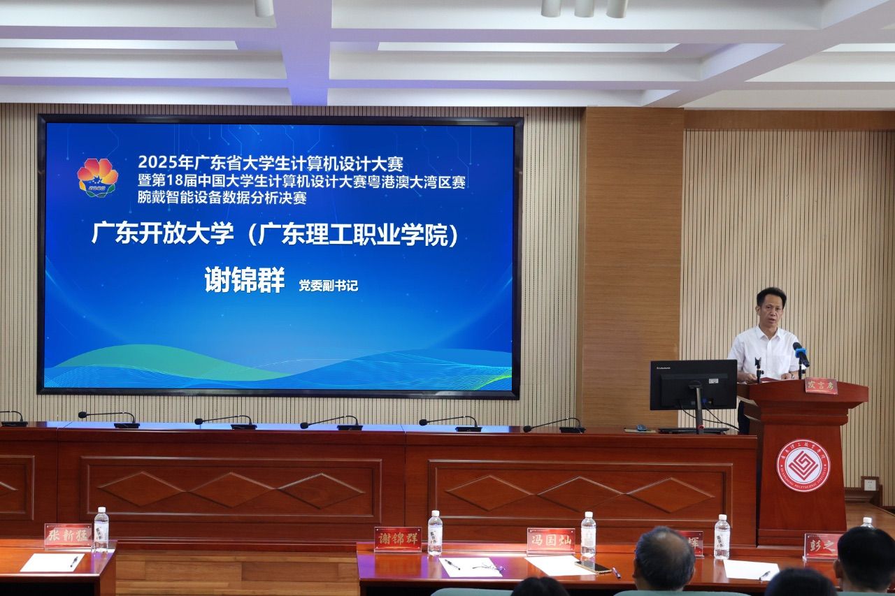 6月7日,由省教育厅主办、广东外语外贸大学承办、广东开放大学(广东理工职业学院)协办、广东泰迪智能科技股份有限公司提供全程技术支持的2025年广东省大学生计算机设计大赛暨第18届中国大学生计算机设计大赛粤港澳大湾区赛腕戴智能设备数据分析赛项决赛,在学校中山校区顺利举行。学校党委副书记谢锦群致开幕辞。人工智能学院主要负责同志,来自全省有关高校、企业的专家评委及带队教师参加开幕式。