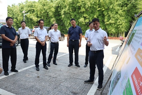 在仙塘镇,调研组一行实地参观东源县“双百行动”校地合作实践基地,听取了我校“双百行动”驻县工作队副队长陈吉生的工作汇报。