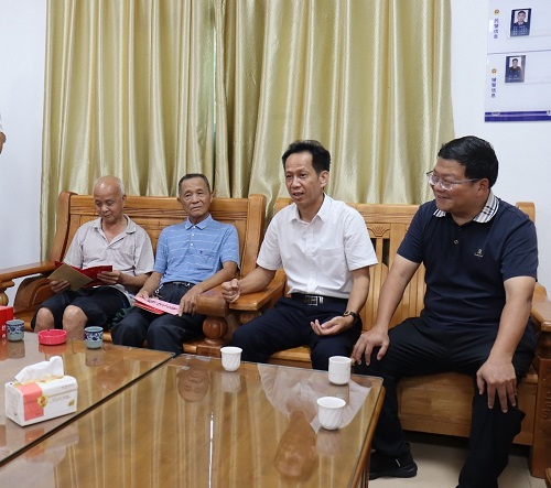 在义合镇,调研组参观义合镇圩镇客厅并听取典型镇村创建和工作队入驻以来帮扶工作开展情况汇报。现场调研品鉴当地农特产品,了解产品的生产工艺、质量品控等情况,商议工会消费帮扶事宜。谢锦群还代表学校党委慰问了我校帮扶点曲滩村“光荣在党50年”和80岁以上老党员,送上了节日祝福和慰问金,听取我校驻村第一书记曾永超汇报村情调查、帮扶工作开展情况和发展规划。随后,调研组一行深入到中洞村实地查看工作队引进的由华南农业大学罗利军教授团队研制的节水抗旱稻试验田,详细了解水稻种植和撂荒地复耕复种情况。