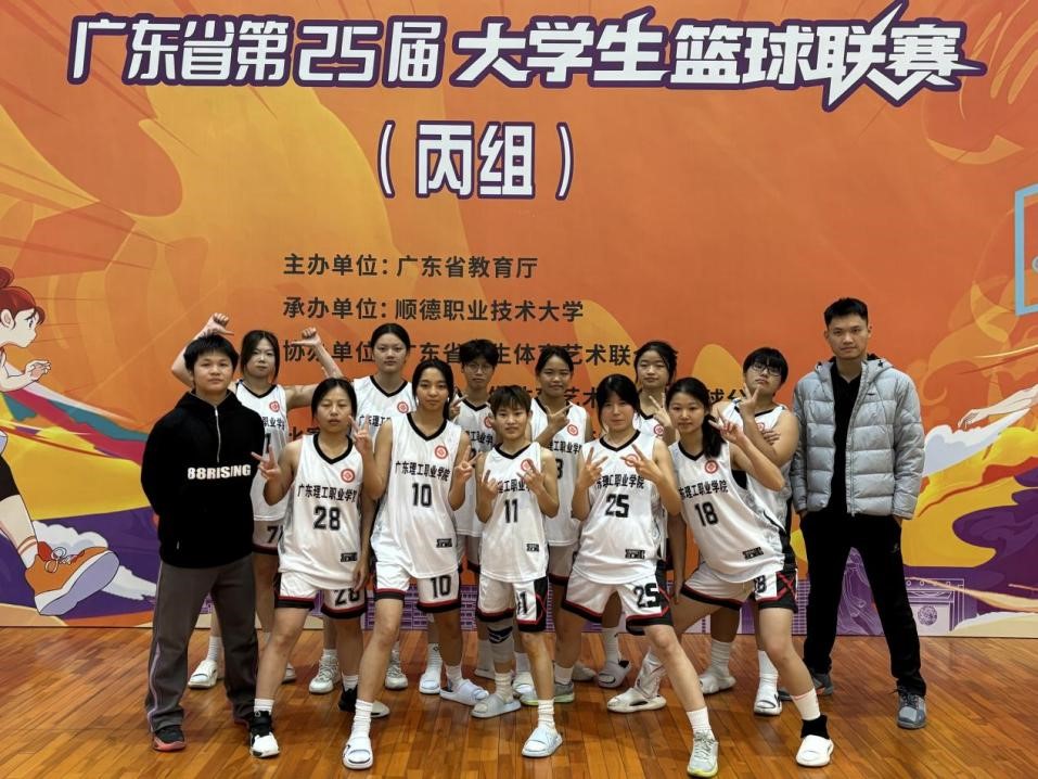 11月24日,由省教育厅主办的省第25届大学生篮球联赛(丙组) 在顺德职业技术大学落下帷幕。学校学生女子代表队小组赛三战全胜,以小组第一名的成绩晋级复赛并获复赛一等奖。公共课教学部教师李辉辉、张志健担任该队教练员。