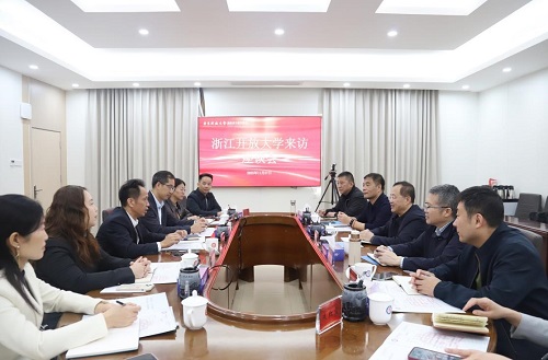 11月27日,浙江开放大学副校长、党委委员杨国章一行来校调研,与学校党委副书记谢锦群就办学特色、“十五五”发展规划编制等方面进行深入交流。