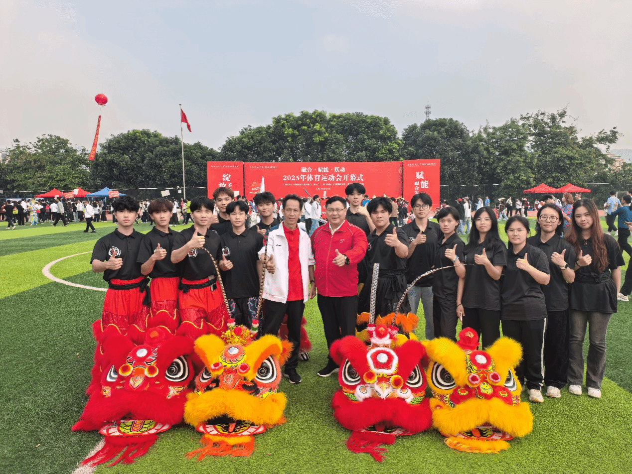 校领导与舞狮社团成员合影