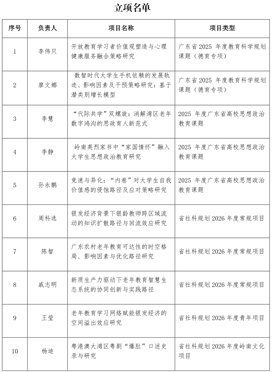 近日,省哲学社会科学规划2026年度常规项目、三类研究专项,省教育厅2025年度教育科学规划课题(德育专项)、2025年度省高校思想政治教育课题等纵向科研项目评审结果陆续公布。其中,学校共有10个项目获得立项,包括教育科学规划等项目5项、省社科规划项目5项。