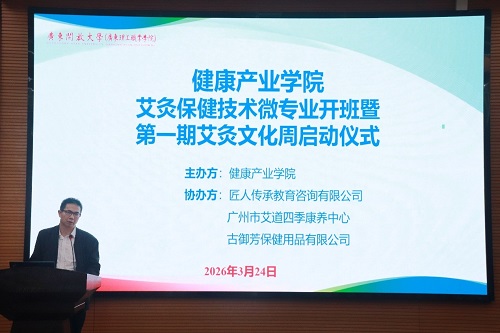丁晋清指出,艾灸保健技术微专业的设立,是学校落实“健康中国”战略、践行“产教融合、工学结合”育人理念的具体举措,也是响应新质生产力发展对复合型人才需求的积极探索。学校将依托微专业建设,坚持“以学促技、以技赋能、以能立业”,持续深化产教融合、校企合作,不断优化课程体系与教学模式,致力于培养“懂艾灸、会操作、能服务、敢创业”的高素质技术技能人才,为大湾区健康产业发展与中医药文化传承贡献教育力量。希望同学们珍惜学习机会,既要深耕传统艾灸技艺的理论精髓与实操技能,也要把握现代健康产业的发展趋势,努力成为中医药文化的传承者、健康服务的实践者和就业创业的先行者。
