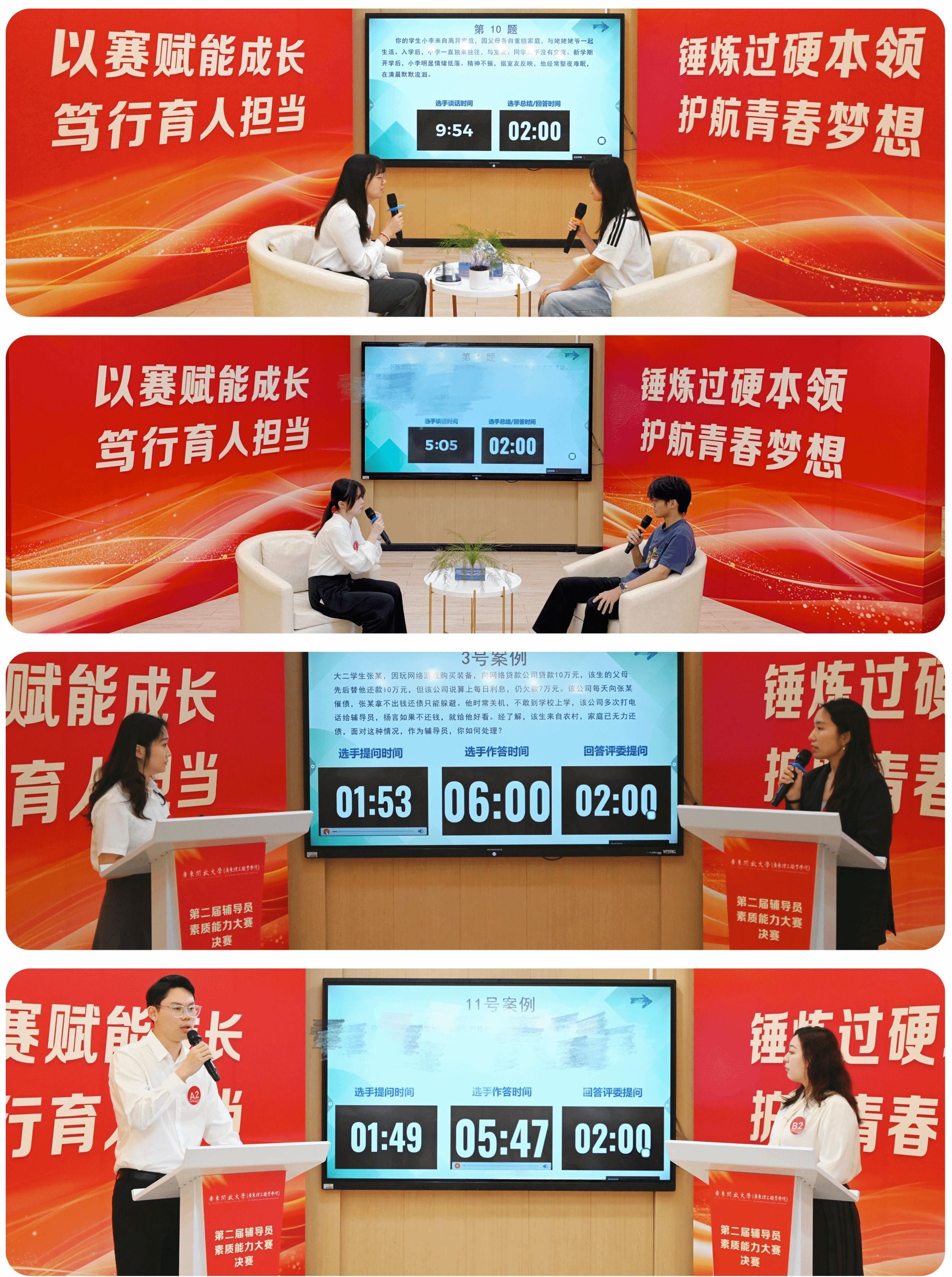 辅导员素质能力大赛被誉为辅导员队伍建设的“奥林匹克”赛事,是锤炼育人本领、提升专业素养、凝聚队伍合力的重要载体。大赛构建校、省、国家三级赛事体系,层层递进、一体推进。目前,省赛及全国总决赛已进行十届,今年将举办第十一届。本次校赛严格对标上级赛事标准规程,紧扣以赛促学、以赛促练、以赛促建目标,既全面检验、提升辅导员综合素养,也为遴选优秀选手备战省赛搭建平台。比赛分初赛、决赛两个阶段,初赛设置基础知识笔试、学情分析两大模块,重点考查辅导员理论功底、政策把握水平,以及对学生思想动态、成长规律的精准研判能力;决赛设置案例研讨、谈心谈话两个环节,着重检验辅导员思想教育引导力、语言表达沟通力、应急风险处置力,以及解决学生实际问题的实战能力。