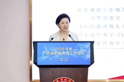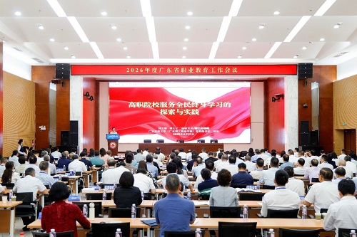 4月21日,2026年度省职业教育工作会议在深圳召开,学校党委副书记、校长刘文清受邀作《高职院校服务全民终身学习的探索与实践》专题发言,系统推介广东全民终身学习平台(以下简称“平台”),并分享了高职院校服务全民终身学习的实践路径。