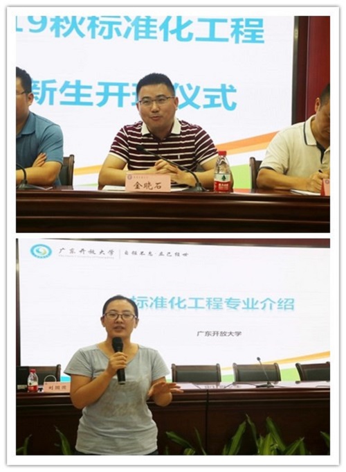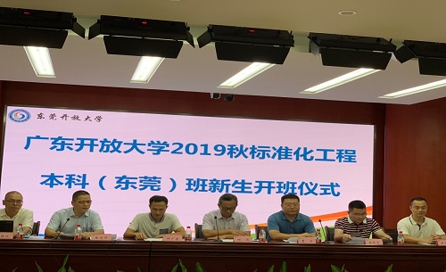10月13日上午,广东开放大学2019秋标准化工程本科(东莞)班开班仪式在东莞开放大学顺利举行。东莞开放大学校长阳涌、副校长张念伟,东莞市市场监督管理局副局长曹宇、标准化科科长尹伟深,市质量技术监督标准与编码所所长杨锡波,市标准化协会会长罗锐球,广东开放大学机电工程学院(标准化学院)党总支副书记何广盛、副院长金晓石、标准化工程专业负责人刘圆圆博士等与本科班首届学生共41名同学共同庆祝顺利开班。