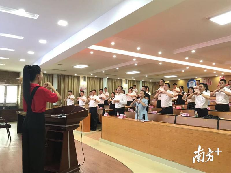 “我爱你中国,用手指在胸前画一颗爱心,再用双手比出屋顶的形状……”开班仪式上,随着歌曲《我爱你中国》的音乐声响起,老师带领学员们跳起了自编的红色带动操,用肢体语言和歌声表达对祖国的热爱和祝福。