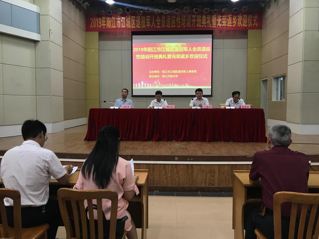 此次培训由阳江市江城区退役军人事务局主办,阳江开放大学承办。目的是帮助退役军人了解当前就业形势与政策,提升就业创业知识与专业技能,树立正确择业观,将服役期间锤炼的品质转化为就业创业的优势,迈好工作转岗、事业转型、人生转轨的关键一步,顺利实现从部队到地方的身份、角色、职业转换,为下步教育培训和就业创业服务奠定基础。参加此次培训的退役军人有110名。他们将在我校参加为期5天的培训,内容包括“不忘初心、牢记使命”主题教育、职场礼仪、个人职业生涯规划、就业创业形势、劳动合同法、税法基础知识等。