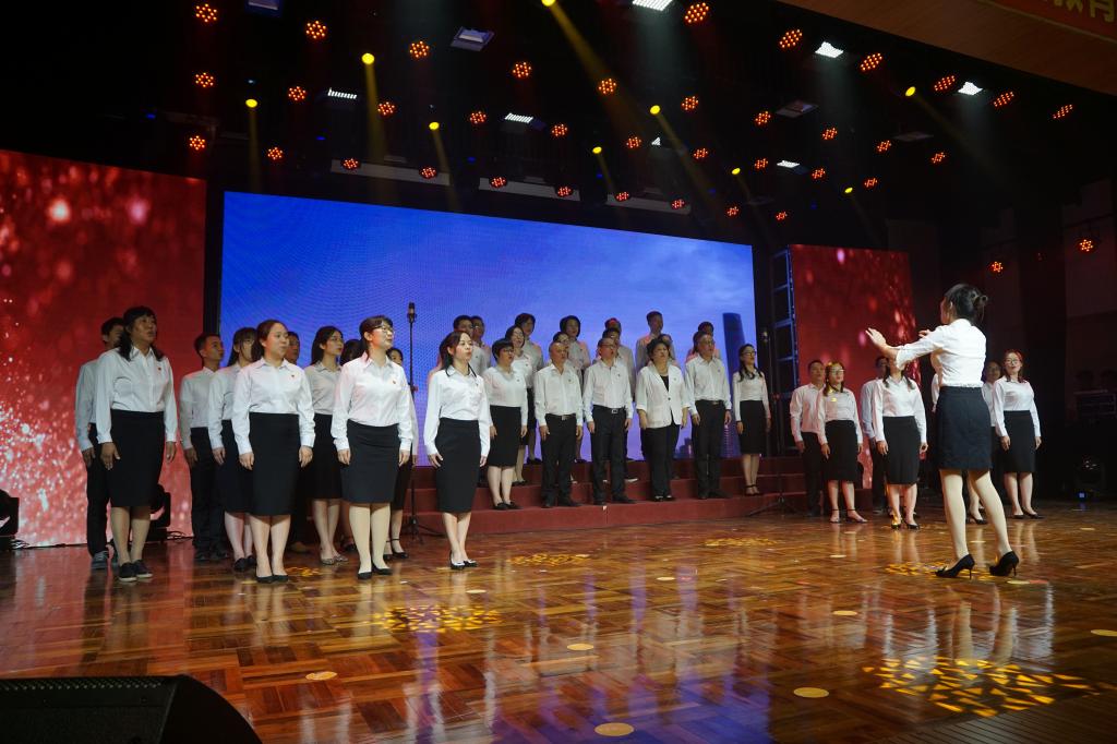 青年党员教师歌伴舞《赞赞新时代》、江门市老干部大学舞蹈《彩云追月》一次次把活动气氛推向高潮。在《我和我的祖国》的合唱中,活动圆满结束。