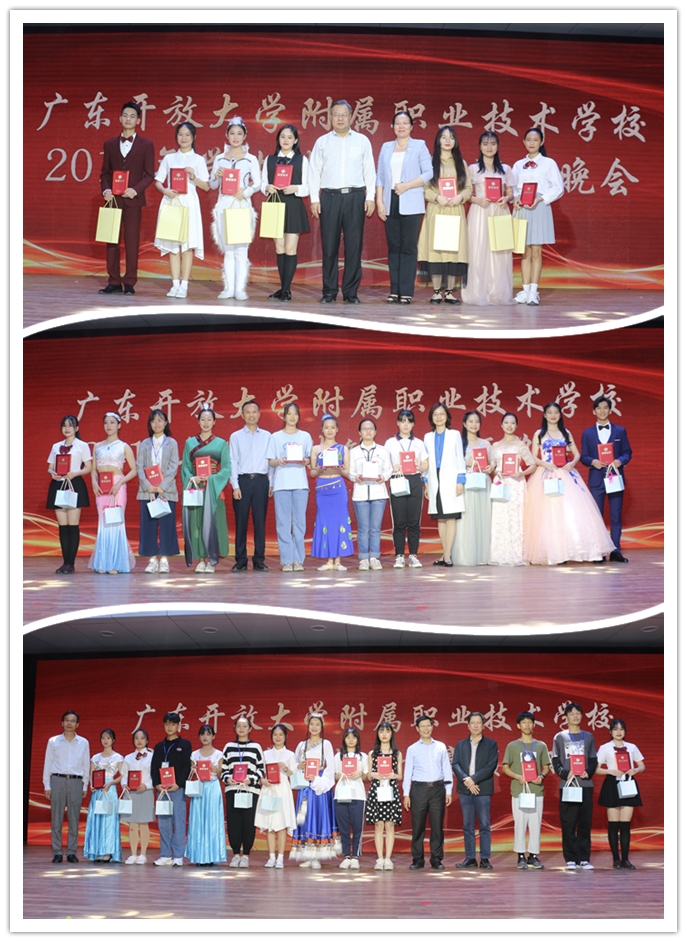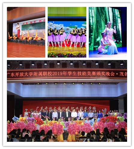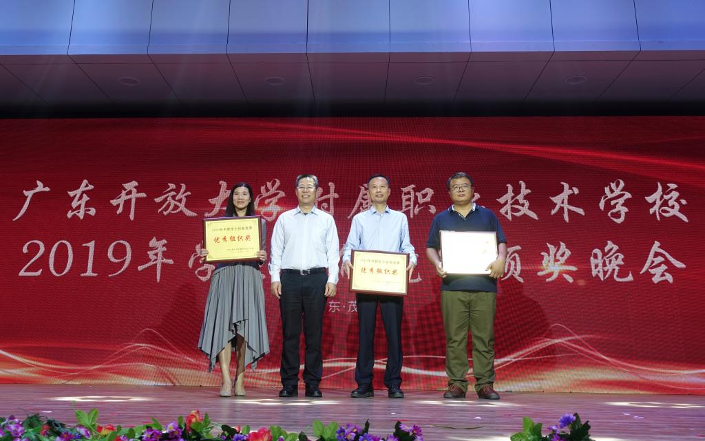 颁奖晚会中,茂名开大、阳江开大、江门开大、开平开大以及佛冈开大的师生表演了精彩的合唱、独唱、舞蹈、时装秀、诗歌朗诵等节目,为参加广东开放大学体系中职教育2019年年会的领导及参加技能竞赛的师生献上了一场精彩的视听盛宴。广东开放大学陈显强副校长观看了颁奖晚会,并为获得优秀组织奖的学校颁奖。