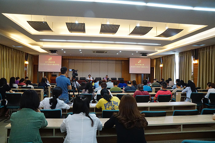 4月23日下午,江门开放大学在蒲葵学术报告厅举行党史学习教育专题宣讲会。市委宣传团成员,学校党委委员、副校长张鼎立副教授为全体教职工宣讲。