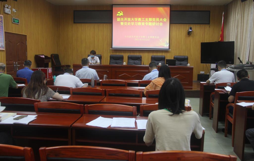 日前,韶关开放大学教工支部召开第二季度党员大会暨党史学习教育专题研讨会,共24位党员参加,两位入党积极分子列席会议。由支部书记吴珊同志主持,校党委班子成员以普通党员的身份参加了本次会议。