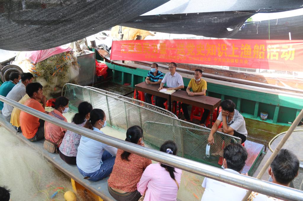 活动中,黄海波用渔民群众听得懂、易接受的方式,讲述了中国共产党百年奋斗历程和辉煌成就。黄老师还生动讲解了强农惠农的有关政策和渔业生产知识,将党的方针政策传递到基层、传递到渔民群众中,进一步引导渔民群众积极开展党史学习教育,做到学史明理、学史增信、学史崇德、学史力行。