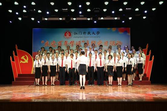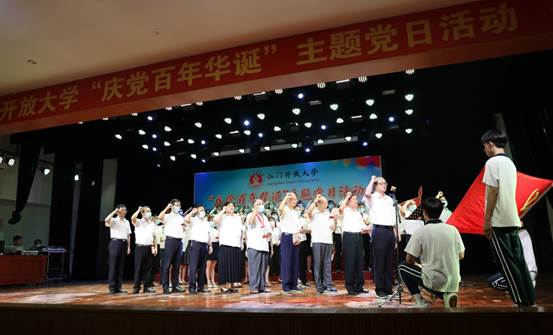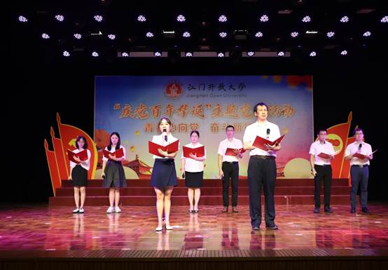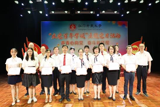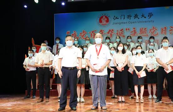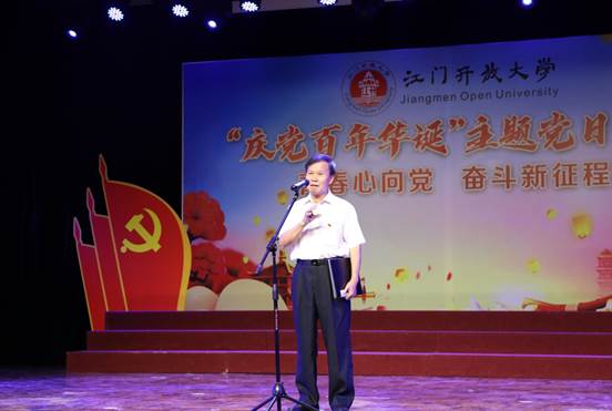 6月25日下午,江门开放大学以“庆党百年华诞”为主题,举行党史学习教育主题党日活动。市委党史学习教育第九巡回指导组组长谢阳禄、组员郭清雅,学校党政领导班子成员、全体教职工、离退休党员代表、学生代表参加了活动。