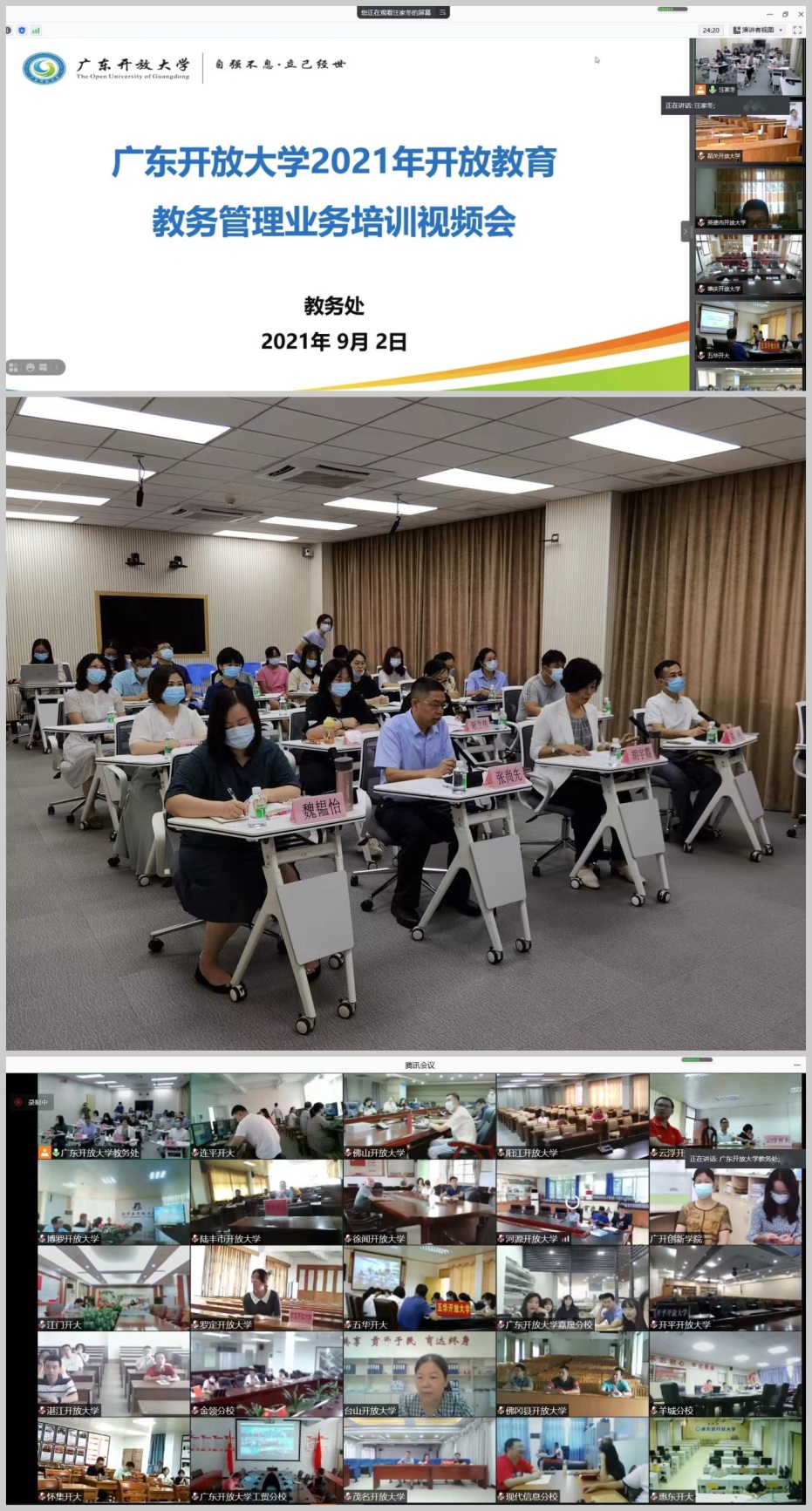 为进一步加强广东开放大学教务管理队伍建设,提高教务管理人员的综合素质及业务水平,不断提升广开体系办学质量和服务质量,9月2日上午,教务处组织全省80多家基层开放大学及合作分校召开了开放教育教务管理业务视频培训会议。