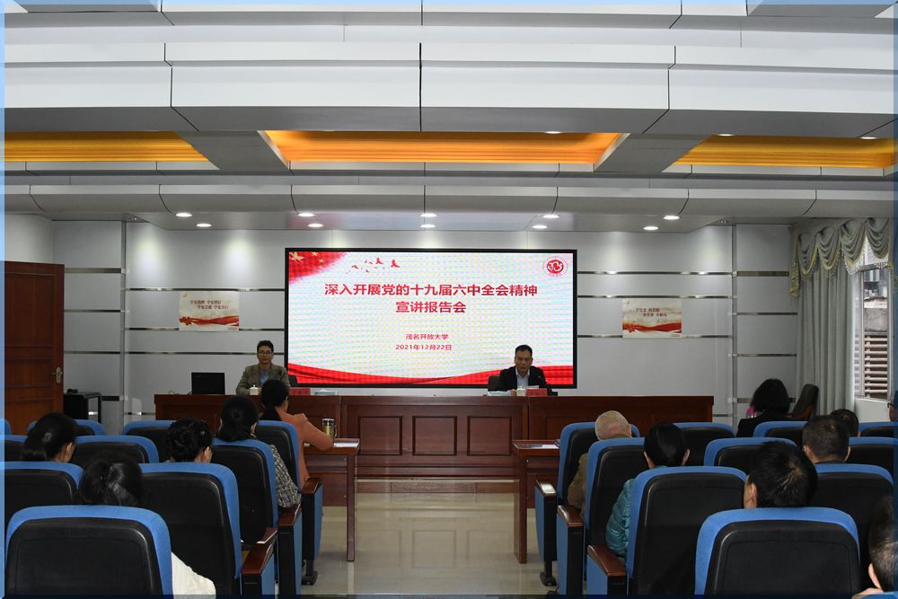 根据市委宣传部《关于组织开展党的十九届六中全会精神宣讲活动的通知》精神,12月22日,茂名开放大学邀请市委宣讲团成员、市委党校政治教研室负责人宁其冲到学校进行党的十九届六中全会精神宣讲。宣讲大会由副校长李瑞垞主持。