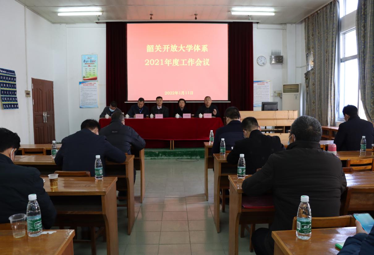 1月11日上午,韶关开放大学体系2021年度工作会议在韶关开放大学召开,总结2021年度工作,对2022年工作进行部署。广东开放大学规划与体系建设处处长李光先,韶关市教育局副局长梁丽娟,韶关开大党委书记、校长钟永红出席会议。韶关开大领导班子成员,各县(市、区)开放大学校长、分管开放大学业务的副校长、招生和社区教育部门负责人,以及韶关开大各科室负责人参加会议。韶关开大党委委员、副校长张朝平主持会议。