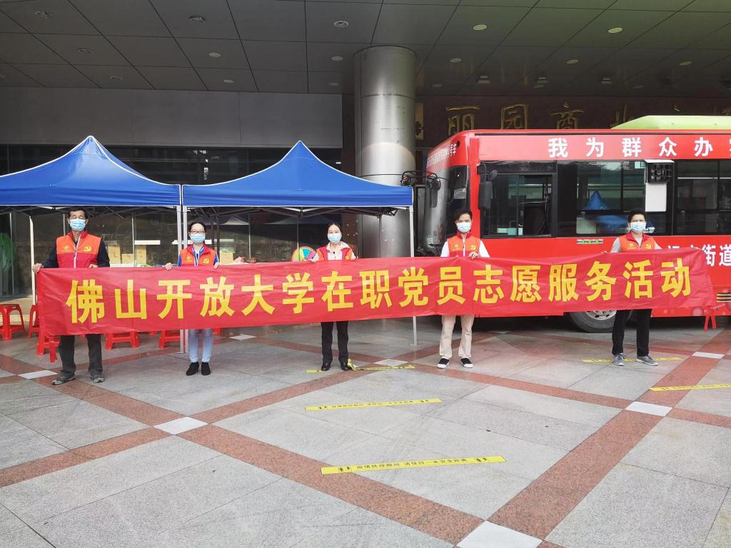 4月6日上午,佛山开放大学副校长余涛带领学校在职党支部党员下沉建设社区,开展助力疫苗接种志愿服务活动。