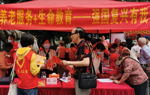 5月8日,中山开放大学在市逸仙湖公园参加由中山市红十字会联合相关部门、镇街共同举办的“情暖夕阳红,喜迎二十大”养老服务+生命教育活动,并主持了其中游园会三个游戏项目之一:指导市民手工制作立体花朵拼出以“强国复兴有我”为主题的图画。