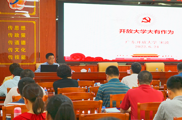 宋波以“开放大学大有作为”为题作辅导报告,以开放教育40多年的发展历程为主线,畅谈广东开放大学体系的昨天、今天和明天。他指出,昨天的广开体系筚路蓝缕,完成了从“广播电视大学”到“开放大学”的转型;今天的广开体系在省委省政府的关心和重视下,实现了“六个跨越式发展”,走在全国前列;展望明天,广开体系肩负着“ 服务构建‘面向人人’的终身学习体系”特殊使命,办学理念、模式、手段、对象、内容全面革新的开放大学将大有作为。他强调,梅州开大体系要认真学习习近平总书记关于教育的重要论述,找准定位,发挥优势,争取更大作为,力争将学校打造成当地学历继续教育、社区教育、老年教育、乡村振兴教育和终身教育改革创新发展主阵地。