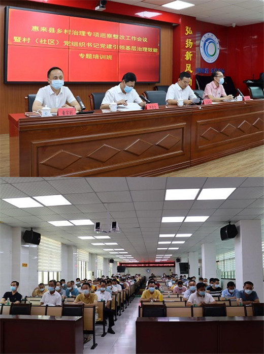 近日,惠来县乡村治理专项巡察整改工作会议暨村(社区)党组织书记党建引领基层治理效能专题培训班在惠来开放大学举办。县委副书记严俊江出席会议并作动员讲话。县委常委、组织部部长王泽伟主持会议,县政府副县长黄宇钊参加会议。
