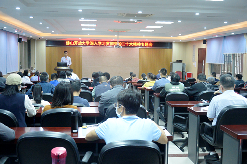 11月2日下午,佛山开放大学召开全体教职工大会,传达省、市关于学习宣传贯彻党的二十大精神,就学校学习宣传贯彻党的二十大精神作出部署。校领导和全体教职工参加会议。