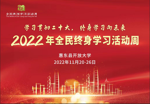 惠东县开放大学积极主办全民终身学习活动周,旨在深入学习宣传贯彻党的二十大精神和习近平总书记关于教育的重要论述,积极推动终身学习理念在惠东落地落实,促进构建高质量教育体系和推进教育数字化,建设全民终身学习的学习型大县,更好服务经济社会高质量发展和全体人民共同富裕。