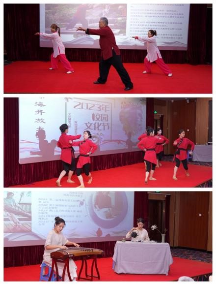 活动由中山工贸技工学校教学点的学生舞蹈队,珠海开放大学特聘培训师、杨氏太极拳第五代传人李湘河老师分别带来的蒙古族舞蹈《希格希日》与杨式太极二十八式表演拉开帷幕。古筝演奏家叶子老师与高级茶艺师齐丹老师的古筝伴奏茶艺表演,将开幕式推向了高潮。活动精彩纷呈,为现场的师生献上一场高雅的艺术盛宴。