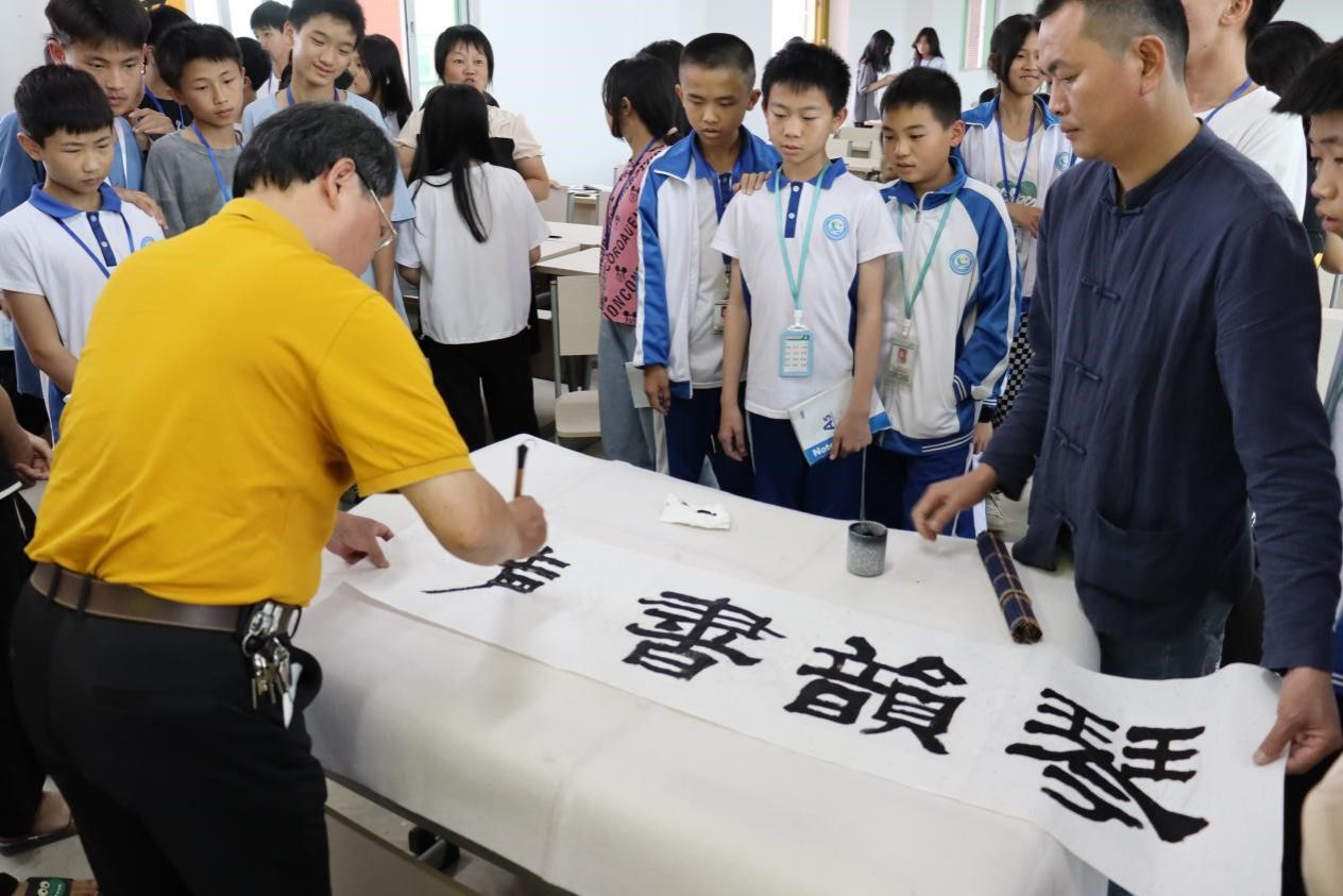 课堂以时间为序,为学生讲解篆、隶、楷、行、草五种书体的演变,帮助学生增强对书法艺术的了解,并以隶书为点,深入浅出、细致地讲解怎样才能写好字,如何创作书法作品。现场学生认真听讲,学味渐浓,课堂上书香味十足。
