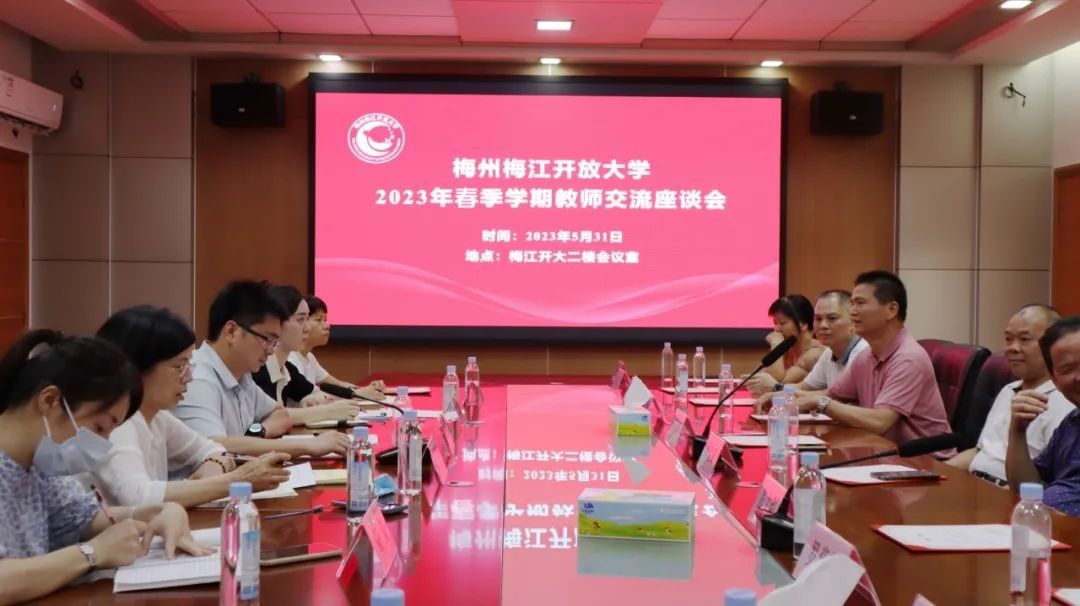 近日,梅州梅江开放大学召开教师交流座谈会。学校党支部书记、校长蔡梓航,副校长、工会主席李思思,教务室全体人员以及全体授课教师参加会议。