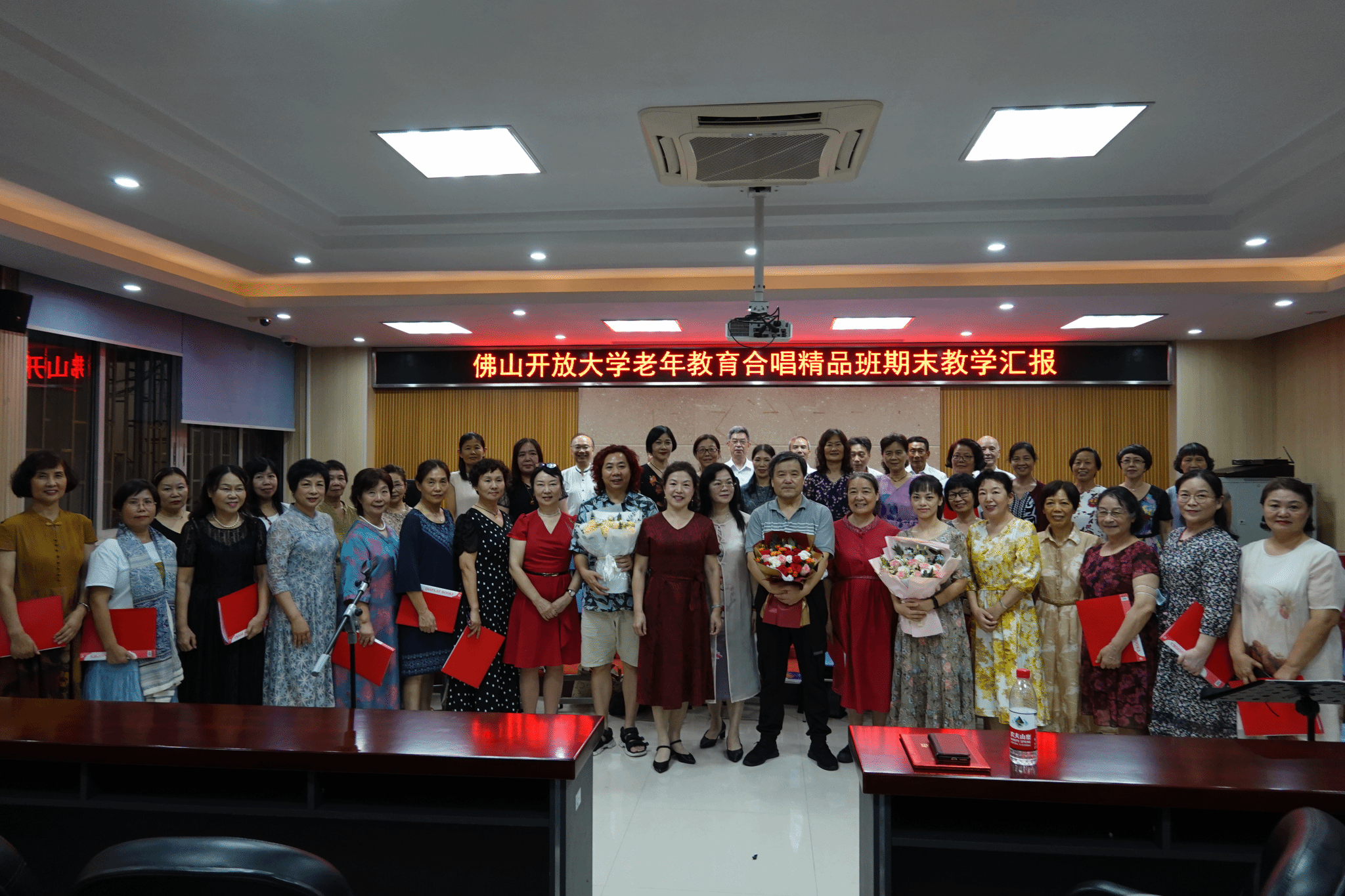 近日,佛山开放大学以《向往》为主题举办了合唱公开课暨老年教育合唱精品班期末教学汇报。佛山开放大学党委书记苗磊、社区教育处负责同志、老年教育合唱精品班的所有学员以及众多爱好音乐的老年朋友们参加活动。