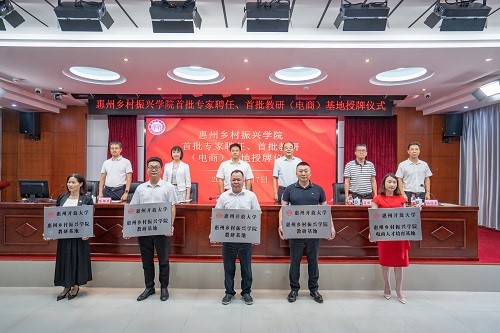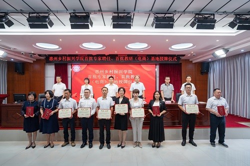 仪式上,来自惠州市高校、科研院所及农牧企业的10位专家、技术骨干被聘为惠州乡村振兴学院专家,5家农牧企业被授予惠州乡村振兴学院教研(电商)基地。