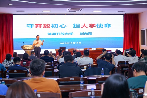 近日,在省校副校长王宜奋的带队下,辽宁开放大学副校长吴厚兴与辽宁开放大学体系研修班100余名学员到珠海开放大学调研交流。珠海开放大学校长刘向阳热情接待了来访客人,并应邀作题为“守开放初心,担大学使命”专题讲座。