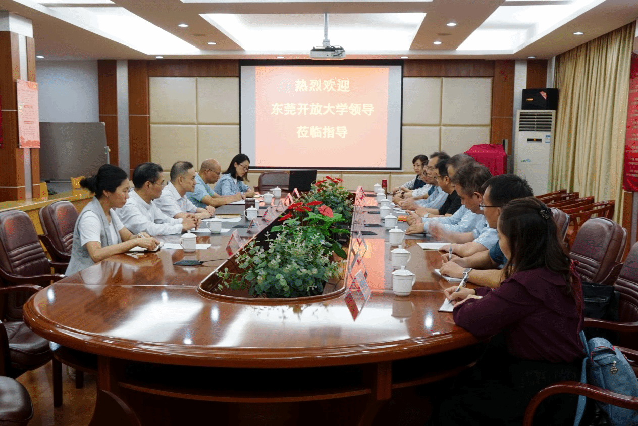 近日,东莞开放大学副校长李树祥、党总支副书记周为带队到江门开放大学交流。江门开放大学党委副书记、校长甘昱,党委委员、副校长钟筱春,党委委员、副校长张鼎立及有关部室负责同志参加交流。
