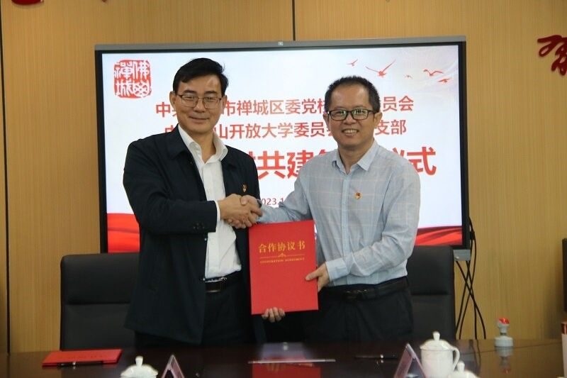 11月20日,佛山开放大学社培党支部与禅城区委党校党支部签订党建结对共建协议书。禅城区委党校党支部书记、常务副校长刘闻,组织委员、副校长叶志强,佛山开放大学党委委员、副校长余涛出席仪式。两校相关部门负责同志和党员参加签约仪式。