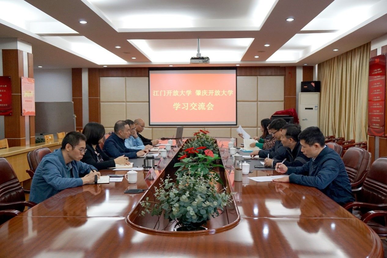 11月21日,肇庆开放大学校长胡天保带队到江门开放大学,就体系建设、招生合作、学历教育等工作进行调研交流。江门开放大学党委书记何志斌,党委副书记、校长甘昱,党委委员、副校长张鼎立,副校长黄力奔参加活动。