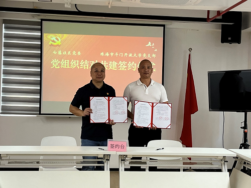 7月8日,珠海斗门开放大学与斗门区白藤街道白藤社区签署党建共建合作协议。珠海市斗门开放大学党支部书记周凯枫、白藤社区党委书记吴文昌出席活动。