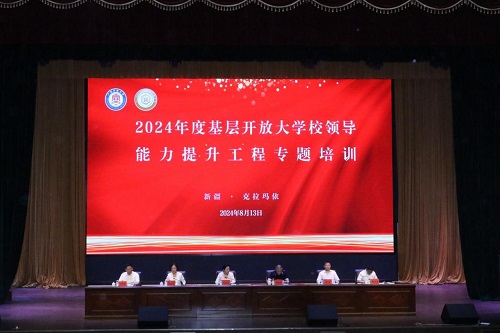 8月13日至15日,2024年度广东开放大学体系“校领导能力提升工程”专题培训在新疆克拉玛依举办,任务是深入学习贯彻党的二十届三中全会精神和习近平总书记关于教育的重要论述,以深化粤新开放大学体系对口协作为契机,进一步铸牢开放教育事业发展共同体意识,提升基层开放大学办学能力,更好赋能学习型社会建设。广东开放大学党委副书记、校长刘文清,新疆开放大学党委书记黄朝华出席并致辞。会议期间,刘文清与克拉玛依市委书记石岗、市委副书记王冰、乌尔禾区委书记刘新等就高水平开放教育助力城市高质量发展进行了深入交流。广东开放大学副校长王宜奋主持培训并作结业讲话。