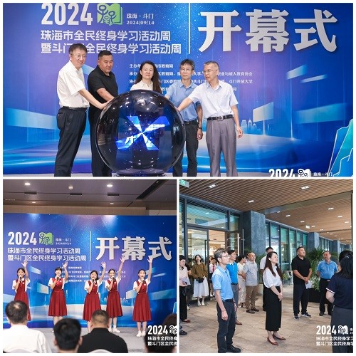 近日,2024年珠海市暨斗门区全民终身学习活动周正式拉开帷幕。本次活动周以“让学习成为一种生活方式”为主题,旨在贯彻落实党的二十大作出的“推进教育数字化,建设全民终身学习的学习型社会、学习型大国”的战略部署,进一步提升市民对于终身学习的认知度和参与度。珠海市教育局领导,珠海市成人教育协会、各区代表、斗门区领导及教育局领导、斗门区相关单位及镇街负责人、社区学院负责人及社区教育代表、市民群众代表参加活动。