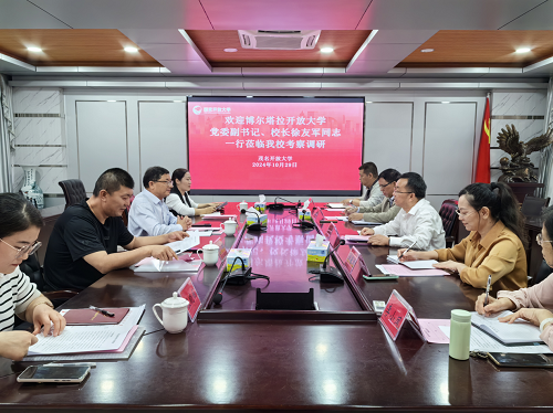 近日,博尔塔拉蒙古自治州开放大学党委副书记、校长徐友军一行到茂名开放大学、高州市根子镇柏桥村开展调研交流。茂名开放大学党委书记、校长林里泉,党委专职副书记李春艳,副校长李瑞垞及相关负责同志陪同调研。