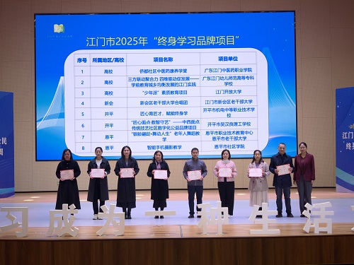 近日,江门市2025年全民终身学习活动周开幕式举行,江门开放大学“‘少年派’素质教育”项目获评市2025年“终身学习品牌项目”。