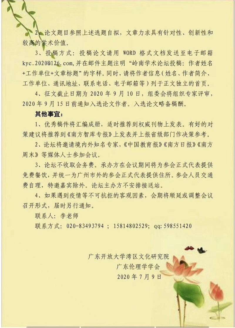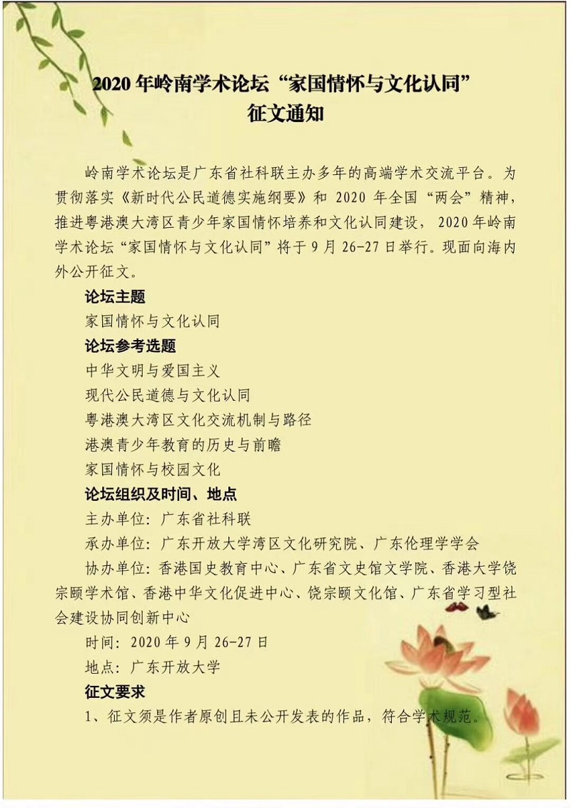 2020年岭南学术论坛“家国情怀与文化认同”征文通知