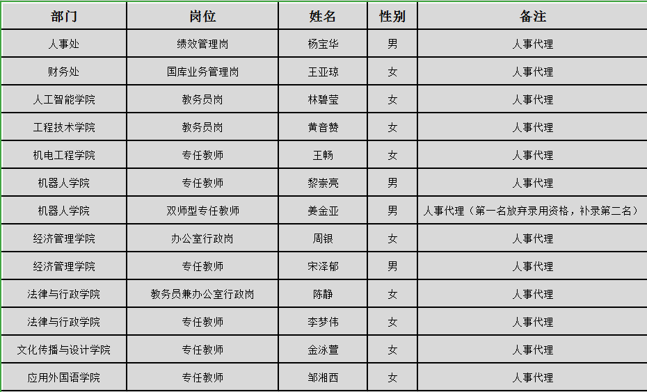 广东开放大学(广东理工职业学院)拟聘用人员名单公示