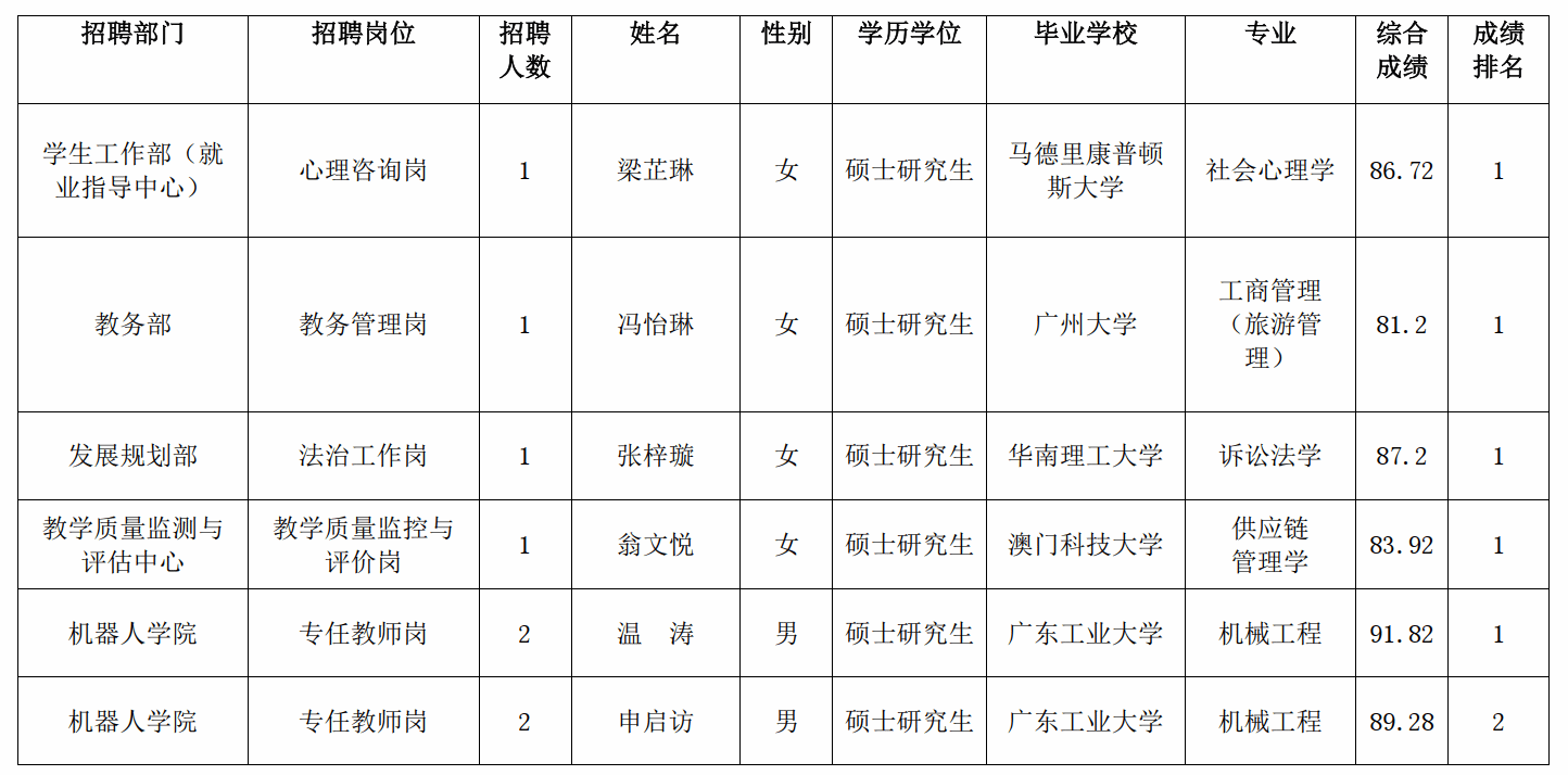广东开放大学(广东理工职业学院)2022年人事代理人员拟聘公示